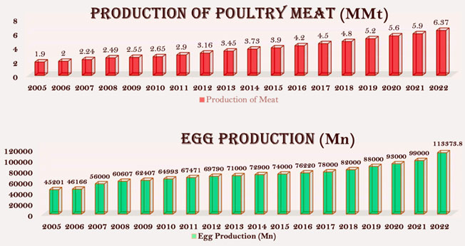 Egg production has seen a significant surge, with annual output surpassing 140 billion eggs. Similarly, broiler meat production has reached approximately 4.5 million tonnes per year. This increase in production is not only meeting domestic demand but also positioning India as a notable player in the global poultry market.