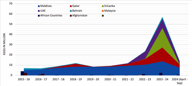 India’s poultry exports have shown promising growth, with the country exporting poultry products worth USD 184.58 million in the 2023-24 financial year. Major export destinations include Oman, Sri Lanka, Maldives, UAE, and Qatar. However, the industry faces challenges such as stringent international quality standards, disease outbreaks like avian influenza, and competition from established exporters. Addressing these challenges through improved biosecurity measures, adherence to international standards, and exploring new markets is crucial for sustaining export growth.